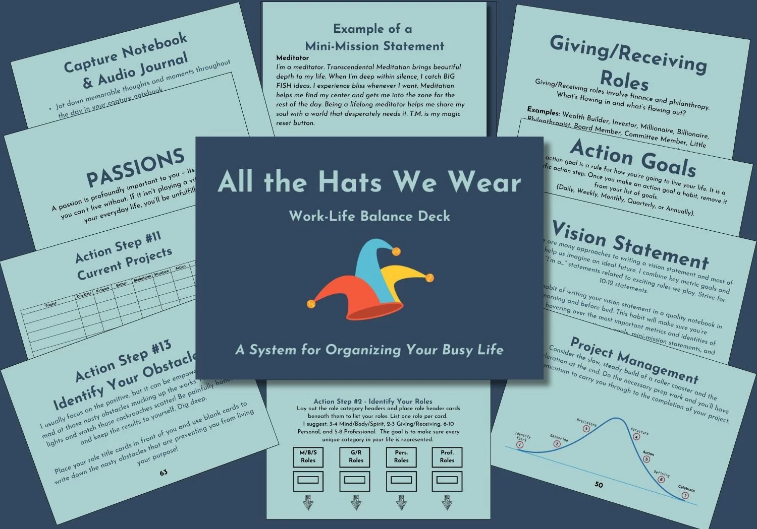 This innovative course comes with a deck of 68 self-development cards and access to 5 videos to walk you through the course so you can regain control of your busy life. Seeing the cards spread out in front of you will help you generate more ideas than ever before and it will give you a birds-eye view of your dynamic life.